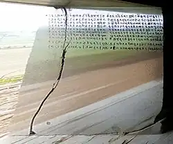 Inscription from the Gupta period (in the background) mentioning "Daridra Kantara" ("The Cave of the Beggars"). -
