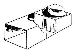 The Visvakarma cave, also called Viswa Mitra, is accessible by the "steps of Ashoka" carved into the cliff. The cave sits a hundred meters and a little east of the main granite hill 25°00′22″N 85°03′53″E / 25.00611°N 85.06472°E. It consists of a rectangular room entirely open to the outside, a sort of elongated porch, and an unfinished semi-hemispherical room. The rectangular space measures 4.27 x 2.54m, and the circular room, entered through a narrow trapezoidal passage, is 2.8m in diameter. On the floor of the porch, four holes were made, which are thought to allow the cave to be closed with a wooden picket fence.[7]