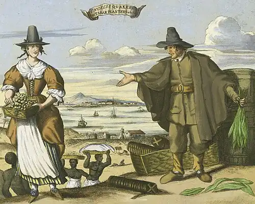 The first English ship, which had arrived on 14 May 1625, was captained by John Powell. The first settlement began on 17 February 1627, near what is now Holetown (formerly Jamestown, after King James I of England),[35] by a group led by John Powell's younger brother, Henry, consisting of 80 settlers and 10 English indentured labourers.[36] Some sources state that some Africans were among these first settlers.[26]