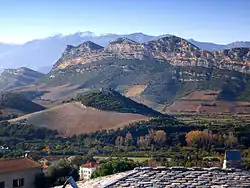 There is an orientation table at the village and at the Col de Teghime where the views are superb over the Gulf of Saint-Florent, the mountains of Nebbio, and the sunny limestone slopes covered with vineyards. At Pigno the view is spectacular: on one side is the Tyrrhenian Sea and the islands of the Tuscan archipelago, and on the other is the Gulf of Saint-Florent, the Agriates, and almost all of Nebbio.