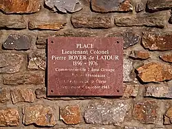 - The War memorial is represented by a commemorative plaque on the wall of the "Lieutenant Colonel Pierre Boyer de Latour" Square.
