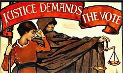 Lowndes became involved in the Women's suffrage movement in the 1890s. In 1899, she attended the International Congress of Women in London.[4] In January 1907, Lowndes established The Artists' Suffrage League (ASL) to create dramatic posters, postcards, Christmas cards, and banners for suffrage events.[6] She became its chair and Barbara Forbes, her companion, was the secretary.[4][7]