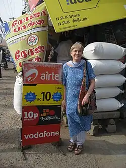 In harness with anthropologist John Harriss,[11] she also started the study through business histories of the economy of a small market town. As it grew she – with others – made repeated visits from 1973 to 2013 and it is thought that this long-term urban study is unique.[12] The economic biography of ‘Middle India’, was published in 2016,[13] with 5000 downloads in the first year.