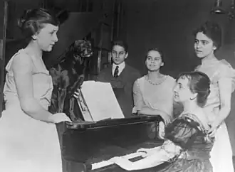 The McClintock family moved to Brooklyn in 1908 and McClintock completed her secondary education there at Erasmus Hall High School;[6][7] she graduated in 1919.[8] She discovered her love of science and reaffirmed her solitary personality during high school.[4] She wanted to continue her studies at Cornell University's College of Agriculture. Her mother resisted sending McClintock to college for fear that she would be unmarriageable, a common attitude at the time.[6] McClintock was almost prevented from starting college, but her father allowed her to just before registration began, and she matriculated at Cornell in 1919.[9][10]