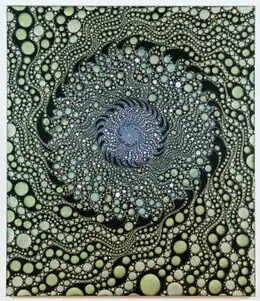 Barbara Takenaga (born 1949) is an American artist known for swirling, abstract paintings that have been described as psychedelic and cosmic, as well as scientific, due to their highly detailed, obsessive patterning.[1][2][3] She gained wide recognition in the 2000s, as critics such as David Cohen and Kenneth Baker placed her among a leading edge of artists renewing abstraction with paintings that emphasized visual beauty and excess, meticulous technique, and optical effects.[4][5][6][7] Her work suggests possibilities that range from imagined landscapes and aerial maps to astronomical and meteorological phenomena to microscopic views of cells, aquatic creatures or mineral cross-sections.[8][9][10] In a 2018 review, The New Yorker described Takenaga as "an abstractionist with a mystic’s interest in how the ecstatic can emerge from the laborious."[11]