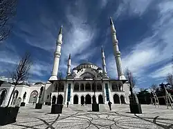 Barbaros Hayrettin Pasha Mosque is a mosque complex in the Levent neighborhood of Istanbul, Türkiye. Architect Sinan's Suleymaniye Mosque in Istanbul formed the insipiration for the design of the mosque. Maritime and shipping motifs were used in the project in honor of Hayreddin Barbarossa and his irregular sailors — Levends — which gave the area its name. The mosque complex is composed of an underground parking lot (for about 1000 cars), a workshop, a library, a multipurpose hall, and a dining hall, and can hold up to 20,000 worshippers.[3][4]