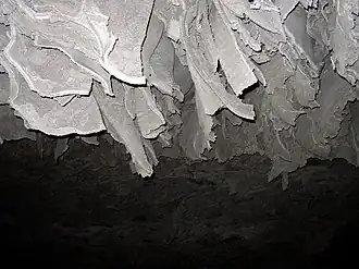 ![]() Flakes of gypsum in the Barbarossa Cave (2005) | |
