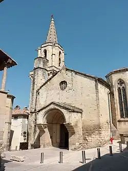 is registered as an historical monument.[22] The Church and bell tower are probably located on the site of an older building (possibly a Roman temple or chapel). The church was originally a semi-circular Romanesque church from the 12th century under the first two spans. It was extended the first time by Cardinal Grimoard, brother of Pope Urban V, in the 14th century by the addition of two Gothic bays and an apse in 1324. Several chapels have been added to it: