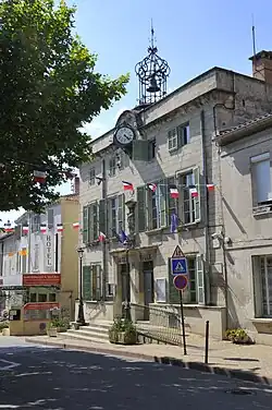[9] has a Renaissance façade composed of a turret and two large arches topped by a columned gallery. The house was originally built in 1133 and belonged to the Marquis de Barbentane. The arches on the ground floor and the columns on the 1st floor date to the 16th century. The building was restored in 2000. The north wing served as town hall from 1670 to 1888. - The Tour du Cardinal Grimaldi (Cardinal Grimaldi Tower) (14th century),