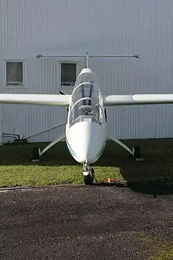 The Snark is a tricycle aircraft of composite construction. Its glider-like cockpit accommodates a pilot and passenger in tandem, the passenger sitting behind and higher than the pilot. The centrally mounted shoulder-wing lies behind the pilot, who has unrestricted visibility. The 80 hp (60 kW) engine is sited behind the cockpit, driving a pusher propeller. Wing control surfaces on the third Snark are flaperons, while the fourth aircraft has conventional ailerons and flaps.[4] Above the propeller, and aft of the cockpit is a slender boom to its T-tail empennage. The high-level tailplane is mounted above the propeller slipstream. There is a springy nylon skid beneath the fin to protect the propeller from ground strikes.
