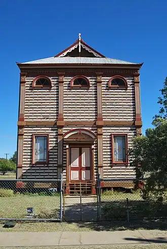 The Masonic temple at Barcaldine was constructed in 1901 as the second temple of the Comet Lodge, the first having been moved from Dingo Creek in stages following the growth of the railway line.[1]