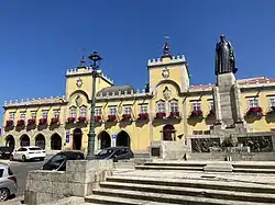 Barcelos (Portuguese pronunciation: [bɐɾˈsɛluʃ] ⓘ) is a city and a municipality in Braga District in the Minho Province, in the north of Portugal. The population in 2011 was 120,391,[1] in an area of 378.90 km2.[2] With 60 parishes, it is the municipality with the highest number of parishes in the country. It is one of the growing municipalities in the country, and is well known for its textile and adobe industries, as well as its horseback riding events and "figurado" style of pottery, which are comical figurines with accentuated features of farmers, folk musicians, and nativity scene characters.