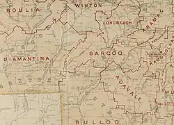 The Barcoo Division was created on 24 December 1887 out of the eastern part of the Diamantina Division,[4] and was subject to the Divisional Boards Act 1887.