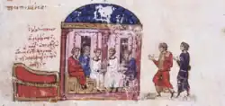 ![]() Michael and Bardas as depicted in the 12th century Madrid Skylitzes | |