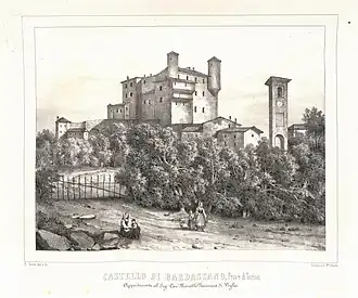 First recorded in 1290 when it came under the control of the comune of Chieri, the castle served as a fortified stronghold for Republic of Chieri the against the Marquis of Monferrat. It was largely reshaped during the 14th century.[1] Major works took place in the 17th century, when parts of the outer fortifications were converted into garden terraces.[1][2] Over time, it passed through the hands of the Sumont, Provana, Balbo Bertone, and Villa families before reaching its current owners, the Giriodi di Panissera di Monastero.[1]