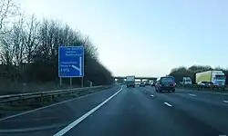 The second main section of the M1 was the Crick to Barlborough section. The Pinxton to Barlborough section was built by John Laing Construction Ltd, which was to open in late August 1967, being moved to early October 1967, and lastly to late October 1967.[4] There had been mining subsidence. Construction began in August 1965.[5] The section opened on Wednesday 25 October 1967. The section had cost £12.5m, and was two months late. Two days later on Friday 27 October 1967, the four miles of the M1 motorway from Stourton to East Ardsley, to the north, opened.
