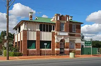 In June 1903 a railway connection between Temora and Barmedman was opened for the carriage of goods. The continuance of the line from Barmedman to Wyalong was opened in November the same year.[18] The final railway extension was opened in November 1917 between Wyalong and Cargelligo (Lake Cargelligo), which completed the Central Western branch line joining with the Main Southern Railway at Cootamundra.[19] In January 1923 a railway line was opened which branched from the Lake Cargelligo line at Barmedman and terminated at Rankins Springs.[20]