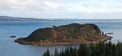 The peninsula is attached to the main land by a narrow strip.[4]