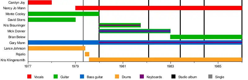 - Carolyn Joy - lead vocals, acoustic guitar (1977-1978)