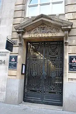 Barnard's Inn dates back at least to the mid-thirteenth century – it was recorded as part of the estate of Sir Adam de Basing (Adam de Baysing), one time Lord Mayor of London. It passed on to John Mackworth, the Dean of Lincoln, who in turn passed it on to the Dean and Chapter of Lincoln on his death in 1451. Three years later, it was established as an Inn of Chancery – these were schools for law students before they passed on to an Inn of Court. Barnard's Inn was one of two Inns of Chancery linked to Gray's Inn, the other being Staple Inn. Members of Gray's Inn were appointed readers to the Barnard or Staple Inn. For example, in the meeting of the Pension of Gray's Inn, 19 November 1617, it was stated: "Mr. William Denny chosen Reader of Barnard's Inn."[1] Members of Barnard or Staple's Inn had to pay four pounds for being admitted to Gray's Inn. Hence, at the meeting of the Pension 15 May 1626 it was said that gentlemen coming from Barnard or Staple's Inn "and crave the benefit of the fine of 43 shillings and 4 pence upon their admittance shall be admitted of the third table and paye but 43 shillings and 4 pence in that respect, otherwise to paye foure poundes as others do notwithstanding they be of Barnards Inne or Staple Inne."[2]