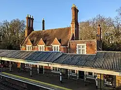 Grade II listed,[2] it was designed by the architect John Thomas Emmett[4] in 1846 and is the only survivor of four brick-built Tudor Gothic-style stations on the Richmond branch, the others being Putney, Mortlake, and Richmond.[2] The ticket office, adjacent to Platform 1, is now privately owned.