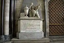 Wyndham never married.[1] He died in Wiltshire on 24 November 1745, aged 63, and was buried in Salisbury Cathedral.[2] The barony died with him.[1] He was awarded the Freedom of the City of Dublin, and received an honorary degree from Trinity College Dublin. In 1729 he laid the foundation stone for the new Irish Houses of Parliament.