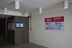 Two side platforms were on the basement level. Ticket hall is located between platform and ground level, while most of the exits are on the ground floor, except one that allows seamless access to the bus terminus from platform 1.[13] Passengers may also enjoy the view of Zhuhai from the roof garden.[14][15]