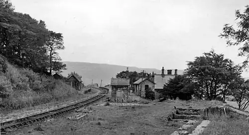 The main station buildings and a small goods yard and siding were constructed on the north side of the line, serving eastbound trains. There was a waiting shelter for passengers which was located on the westbound platform.