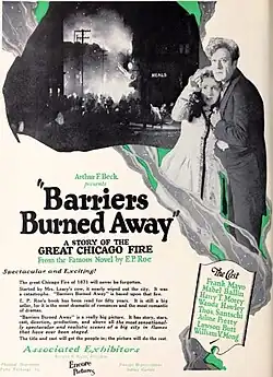 Barriers Burned Away is a 1925 American silent historical drama film directed by W.S. Van Dyke and starring Mabel Ballin, Eric Mayne, and Frank Mayo.[1] It is set at the time of the Great Chicago Fire in 1871.