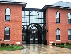 In 1889, the Elgin, Joliet and Eastern Railway (the "EJ&E") was built through Barrington, crossing what is now the Union Pacific/Northwest Line northwest of town.[7] In the late 19th century, a series of fires damaged numerous downtown buildings. In 1890, fire swept along the north side of East Main Street east of what is now the Union Pacific/Northwest Line, destroying several buildings.[12] In 1893, another fire destroyed most of the block that is now Park Avenue, and in 1898 a fire destroyed several buildings along the north side of Main Street from Hough Street to the Northwest Line railroad tracks.[12] As a result of these fires, residents replaced the burned frame structures with more substantial brick and stone buildings, many of which remain in use today (albeit with substantially altered facades).[12]