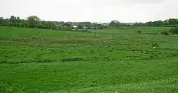 An ironstone quarry was also located at the site and the ore, crushed on site, was taken down the 'bogey line' via Brackenhills railway station on the Glasgow & South Western railway line to the old Glengarnock steelworks, owned by the Glengarnock Iron & Steel Co. Ltd.[12] The works closed in 1921, however the waste bings remained for many years.[4] The 'Beith Supplement and Advertiser' reported in 1912 that after a two-month-long strike at Glengarnock Steelworks the ironstone works at Dockra would be re-opening.[13]