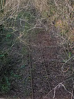 A large Defence Munitions (DM) centre is located between Beith and Barrmill. The site was originally developed in 1943 as a conventional Royal Naval Armaments Depot, munitions store, for the Royal Navy. The railway is no longer used for transporting items to the depot, due to the delicate nature of modern complex armaments, the last trains running in 1996 although the trackwork remains intact within the depot (2014).[14] Locals relate how the engine drivers used to park their train at the overbridge and walk up to the shop to get a drink and a snack. The line saw the occasional MOD passenger train when conferences or inspections were being held at the 'Admiralty'.