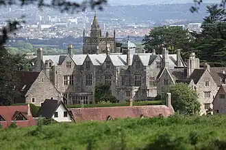 The original building was converted into a country house in around 1538, largely rebuilt in 1545, and further altered and extended in around 1602 by its owner Dr Francis James into its current E shape, which is the oldest part to survive.[1] It was sold in 1659 to William Gore, in whose family it was passed down until 1881 when it was bought by Anthony Gibbs, son of William Gibbs of Tyntesfield, who sold it to his brother Henry Martin Gibbs. He largely rebuilt the Jacobean house and the church.[4]