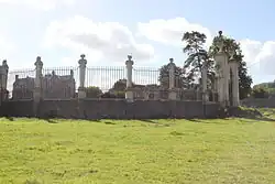 The house is surrounded by 6 hectares (15 acres) of formal gardens and a more extensive area, around 60 hectares (150 acres), of parkland, which held a medieval deer park. In 1890 Inigo Thomas carried out extensive work.[7] building gazebos, a balustraded garden wall[8] and walled courts.[9] In 1890 he added a set of gates and a wall with twelve pillars known as the twelve months of the year.[10] They support sculptures by Alfred Drury representing the "daughters of the year", with January being a young girl at the northern end along to an elderly matriarch representing December at the south, each with flowers suitable to the particular month.[11]