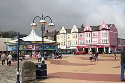 Barry (/ˈbæri/;[2][3] Welsh: Y Barri; pronounced ˈbari]) is a town and community in the Vale of Glamorgan, Wales. It is on the north coast of the Bristol Channel approximately 9 miles (14 km) south-southwest of Cardiff. Barry is a seaside resort, with attractions including several beaches and the resurrected Barry Island Pleasure Park. According to Office for National Statistics 2021 estimate data, the population of Barry was 56,605.[4]