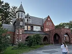 When the Brothers of the Christian Schools' property in Amawalk was condemned to make way for the New Croton Reservoir, they relocated their novitiate to Pocantico. Around 1929, the Rockefeller family purchased the property. With the proceeds from the sale, the brothers of the New York District purchased the Massena estate at the northern section of the hamlet. They moved the novitiate there[3] and established St. Joseph's Normal Institute as a teacher training facility. The Institute closed in 1969. In 1975 the property was bought by the Unification Church, where its Unification Theological Seminary was located.[4] The property was again listed for sale in 2018.[5] It was bought by Bard College in 2023 for $14 million, originally to serve as classroom, dorm, and office space.[6] However, in November 2024, Bard College at Simon's Rock announced that it would be moving to Massena starting in fall 2025.[7] - In 1824, John R. Livingston gave the 250-acre "Edgewater" property to his daughter Margaretta and her husband, Rawlins Lowndes Brown. Brown died in 1852 and the following year, his widow sold the estate to New York financier Robert Donaldson Jr., who commissioned architect Alexander Jackson Davis to add an octagonal library wing. It is now owned by a preservation trust.[8]