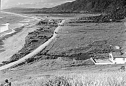 The Barrytown Flats are a 17 km (11 mi) coastal plain north of Greymouth on the West Coast of New Zealand's South Island. A series of postglacial shorelines and dunes backed by a former sea cliff,[1] they was originally covered with wetland and lowland forest, including numerous nīkau palms (the southern limit of this species on the West Coast).[2] The sands were extensively sluiced and dredged for gold from the 1860s, centred on the small settlement of Barrytown.[3] The drier areas of the flats have been converted into pasture, but significant areas of forest remain, including Nikau Scenic Reserve.[4] The flats are bordered by Paparoa National Park and the only breeding site of the Westland petrel (Procellaria westlandica).[5] There are significant deposits of ilmenite (titanium dioxide) in the Barrytown sands, and there have been several mining proposals. Consents for a sand mining operation were granted in 2024 following a three year consenting process. The mining operation will extract 4.8 million tonnes of mineral sands over an area of 63 ha (160 acres).