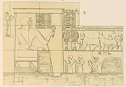 Her burial consists of a pyramid and a small temple in front of it. Under the pyramid is a corridor leading to two burial chambers that were painted. The chambers were found looted but still contained shabtis and some other objects. The pyramid temple is decorated with reliefs showing the queen and providing her name and title.[1]. The name Bartare and the title Kandake are written within a Cartouche. She is also called son of Ra and king of Upper and Lower Egypt. Therefore, some scholars regarded her as a king.[2] However, more recent research sees her as a non ruling queen, perhaps dating around 200 BC.
