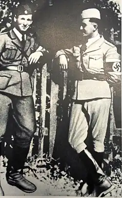 Under German occupation, Rahula commanded Schutzmannschaft Battalion 68, taking part in anti-partisan actions against Polish and Soviet partisans.[1] The unit numbered about 600 people, mostly recruited from among students and graduates of the Novogrudok teachers' seminary, usually with a strong Belarusian patriotic sentiment.[1] In April 1944, the unit fought a battle with Soviet partisans near Karelichy. In May 1944, it took part in a partisan action near Dokshytsy and Hlybokaye.[1] Contrary to what he states in his memoirs, his unit was never incorporated into the Belarusian Home Defense (BKA) and did not become a Belarusian unit independent of German rule.[5] He left Belarus with the German army ahead of the Soviet advance.