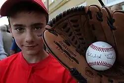 - A cork sphere, tightly wound with layers of yarn or string and covered with a stitched leather coat.[1]