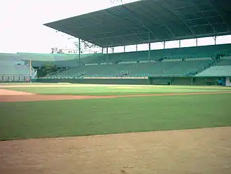 In amateur baseball fields, the home plates are made of wood. The fields are often in poor shape. The grandstands present at amateur baseball fields are protected by chicken wire and rarely painted. The maximum occupancy for a grandstand is 300 fans. Generally the stands are full, and often fans will stand on the sidelines to watch the games. The stands at amateur games are filled with cane cutters and factory workers looking to enjoy life after a hard day's work in the fields.[18]: 639