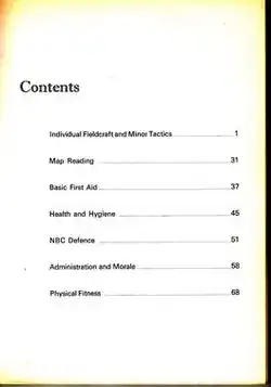 The opening chapter Individual Fieldcraft and Minor Tactics starts with the information: A sound knowledge of Fieldcraft and Minor Tactics will help you in combat to:[2]
