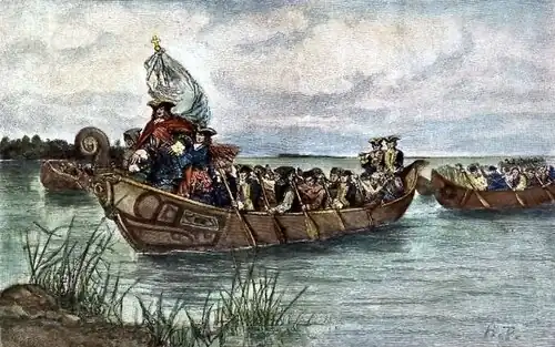 On June 5, 1701, a flotilla of 25 canoes embarked from Montreal, Quebec carrying 50 soldiers, 50 artisans, 2 priests, and an explorer, Antoine de la Mothe Cadillac. Their journey took them along the Ottawa River, winding through Lake Nipissing, to the French River, Lake Huron, Lake St. Clair, before finally entering the Detroit River. On July 24, 1701, they arrived at the foot of a steep bluff that stretched along the riverbank, specifically at the present site of Hart Plaza. Perched twenty to thirty feet above the river, they began constructing Fort Pontchartrain du Detroit.