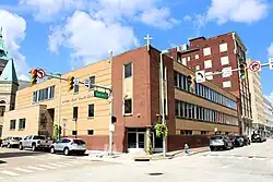 A new school building opened on September 8, 1920, and the first high school classes began in 1922. The parish purchased and renovated a building to house the high school in 1927. Bishop John Swint laid the cornerstone for a new high school in 1940 and the building opened the following year as Charleston Catholic High School. The grade school was remodeled in 1942 and the Dunbar Building, which had served as grade school, convent, rectory for the Capuchins, school, first high school, parish hall, and parish library was demolished. The school added Kindergarten classes in 1952 and a third floor to the high school building in 1956. The current grade school building opened in 1962 at a cost of $521,140.[2]