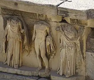 The basilinna was also responsible for administering an oath to the gerarai, women priests apparently appointed by the archon basileus.[7] This took place on the second day of the Anthesteria, and Robertson argues that it must have taken place after the wedding.[6]