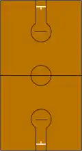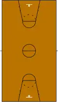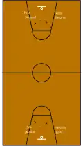 - ^ NCAA Division I men's play used these dimensions in the 2019–20 season, with Divisions II and III adopting them for the 2020–21 season. Women's play in all divisions adopted this distance in 2021–22.[5]