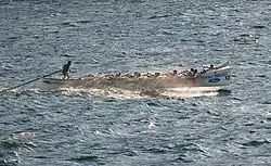 The crew is made up of thirteen oarsmen and the cox, who faces them at the stern. The boats are called traineru (trainera in Spanish), and are derived from 19th century fishing boats.