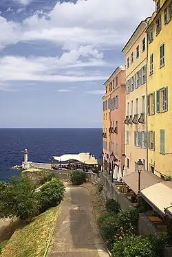 Bastia is the principal port of the island and its principal commercial town and is known for its wines. The inhabitants of the commune are known as Bastiais or Bastiaises.[8] The commune has been awarded three flowers by the National Council of Towns and Villages in Bloom in the Competition of cities and villages in Bloom.[9]