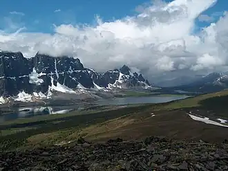 Bastion Peak is a 2,994-metre (9,823 ft) mountain summit located on the shared border of Jasper National Park in Alberta, and Mount Robson Provincial Park in British Columbia, Canada. It is situated in the Tonquin Valley of the Canadian Rockies. It was named in 1916 by Édouard-Gaston Deville because it has an appearance similar to that of a bastion on a castle.[1][4] Its nearest higher peak is Turret Mountain, 1.6 km (0.99 mi) to the west, and its greater parent is Mount Geikie 3 km (1.9 mi) to the west.[1]
