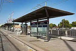 Two railway stations opened in the city in 2011 as part of the new Tel Aviv–Rishon LeZion West line: Bat Yam–Yoseftal railway station and Bat Yam–Komemiyut railway station.[39] Bat Yam is served by the Red Line of the Tel Aviv Light Rail since August 18, 2023,[40] and is planned to be served by the Metro line M3. The city will be the terminus for both lines and the lines will meet at the new Yoseftal Station.